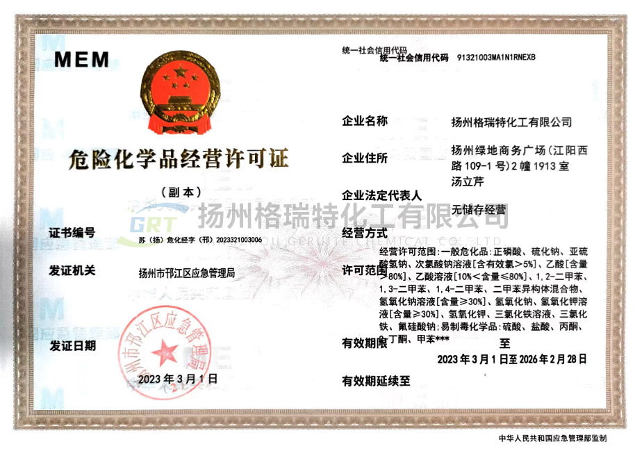揚州格瑞特化工有限公司生產工廠坐落于江蘇省海安縣胡集工業園區和海安精細化工工業園。總公司成立于1999年,是集科、工、貿為一體的現代化生產型企業。專業致力于水處理劑、紡織印染助劑、化纖油劑等產品的科研、開發、生產和銷售。總公司占地面積40000m,建有現代化標準廠房,擁有先進的生產設備。年產各類水處理劑系列產品12000噸,紡織印染助劑5000噸,產品12個系列40多個品種??偣咀⒅丶夹g投入,設立產品研發中心和環保運營中心,聘請了多位專家為公司技術顧問,并和多個重點院校建立了長期技術合作開發關系,是南通大學、江南大學、南京工業大學產學研基地。